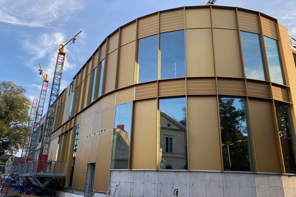 5 meter långa fyllningspaneler i guld pryder fasaden