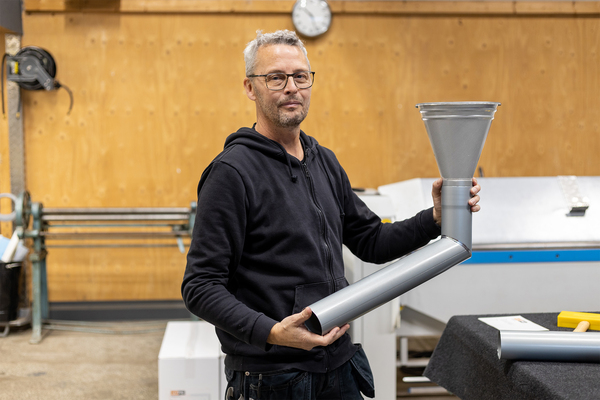 Peter löser specialtillverkade detaljer i Rheinzink