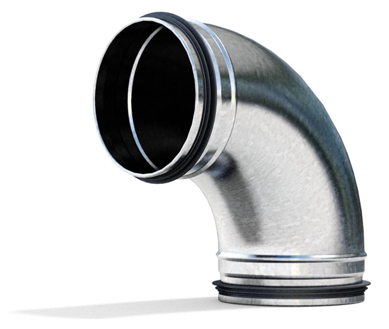 Pressad 90 graders ventilationsböj för cirkulära kanaler.