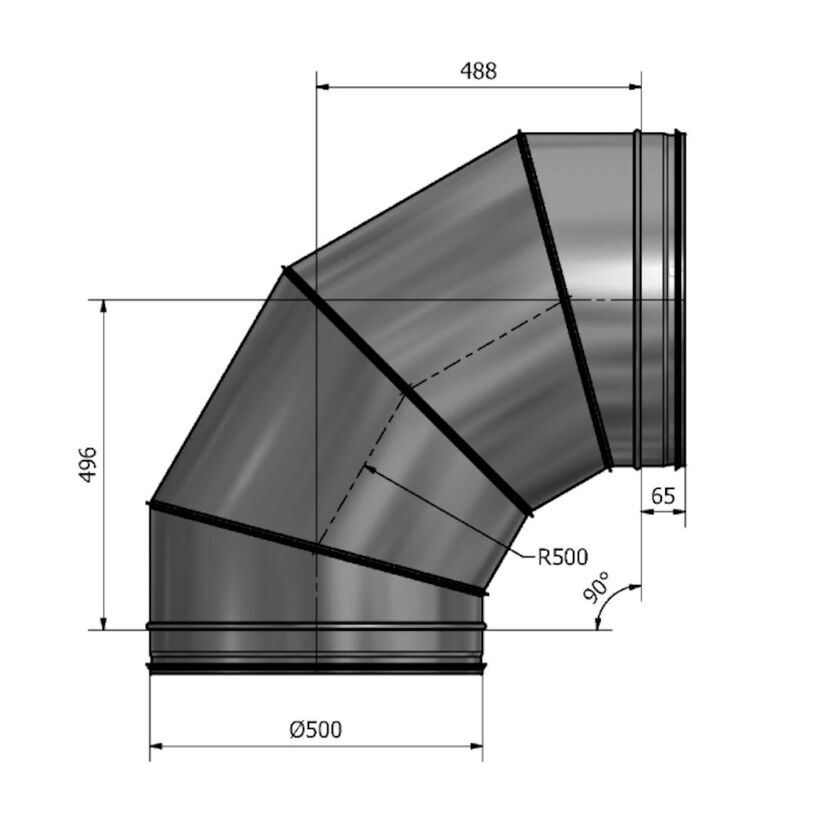 Pressad 90 graders ventilationsböj för cirkulära kanaler. Byggd.